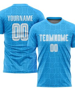 Maillot de football personnalisé à sublimation bleu clair et blanc pour la maison
